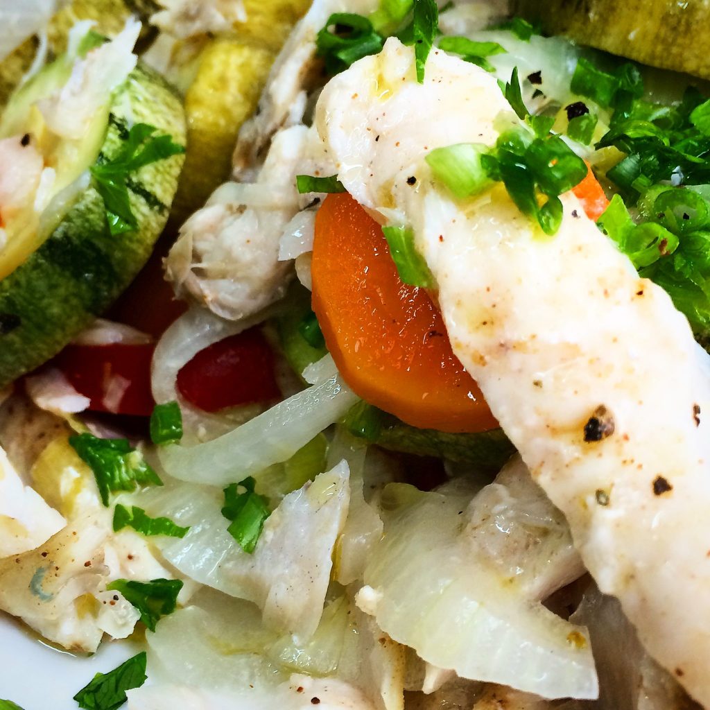 Esta receita é perfeita pra quem não tem muita habilidade pra fazer peixe. Você quase não vai ter nenhum trabalho, é só colocar no forno e esperar pra sua refeição sair pronta! INGREDIENTES: 700 g de filé peixe (Robalo ou use o peixe da sua preferência) 1 abobrinha 1 cenoura 1 cebola grande 1 pimentão vermelho 1 alho poró (opcional) 2 limões tahiti Azeite extra virgem para regar o peixe e os vegetais, aproximadamente 50 ml Sal e pimenta a gosto 1/2 envelope de Hondashi (opcional para temperar o peixe) Salsinha e cebolinha para finalizar MODO DE PREPARO: Forre uma forma com papel alumínio deixando uma sobra grande de papel para servir de tampa para a forma. Adicione um pouco de azeite de oliva na base e espalhe com um pincel para untar toda a superfície. Na base coloque a abobrinha cortada em fatias grossas. Adicione a cenoura sem casca cortada…